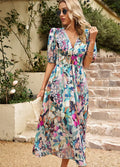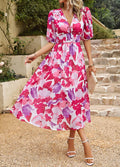 Romantic and painterly, this midi dress brings soft drama with every step — a dreamy canvas of color and silhouette.