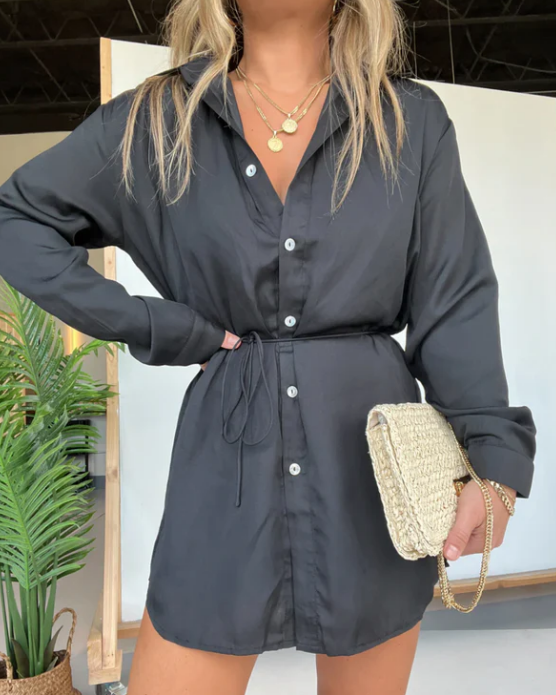 Effortless and stylish, the Reena Button Down Romper Dress is a must-have for any fashion-forward wardrobe.