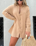 Button-Down Front: The classic button-down front adds a functional yet stylish detail, perfect for layering or wearing solo.