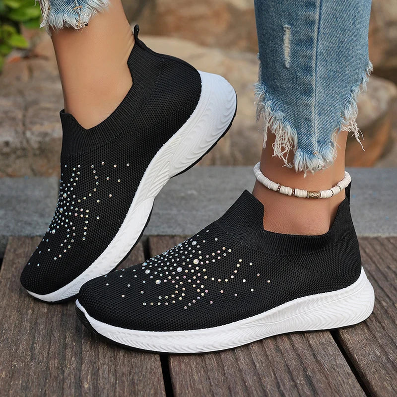 Sparkling Rhinestone Accents: The Sara Stylish Sneakers feature dazzling rhinestone accents that add a touch of glamour and sophistication to your outfit.