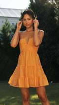 Airy, playful, and made to twirl — this halter mini dress features flouncy tiers and an open back that balances sweet charm with striking style. Ideal for weekend escapes or festive evenings under the stars.