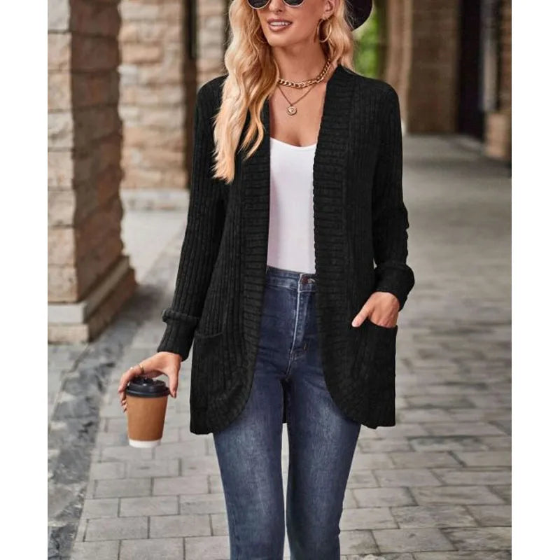 A timeless addition to your wardrobe that combines classic elegance with cozy comfort. This versatile cardigan is designed to offer a sophisticated layering option for any occasion, making it a staple piece for every season.