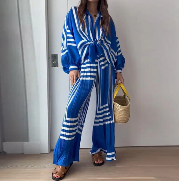 This is our Twist Front Long Sleeve Top and Wide Leg Pants Set