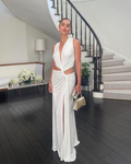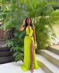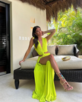 Embrace your bold side with the Yasmin Sexy Sundress, designed with a stunning twist cloth detail and a daring high slit. This sleeveless sundress is crafted from high-quality polyester, ensuring you look and feel fabulous for any summer occasion.