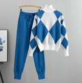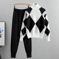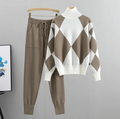 A cozy and stylish ensemble crafted for comfort and versatility. This coordinated set features both pants and a sweater, made from soft knitted fabric for a luxurious feel and effortless chic.