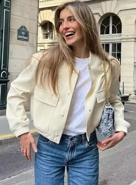 Trendy Details: With its cropped length and practical pockets, the Zora Bomber Jacket incorporates trendy details that add a fashionable edge to your outfit, ensuring you stand out from the crowd with confidence.